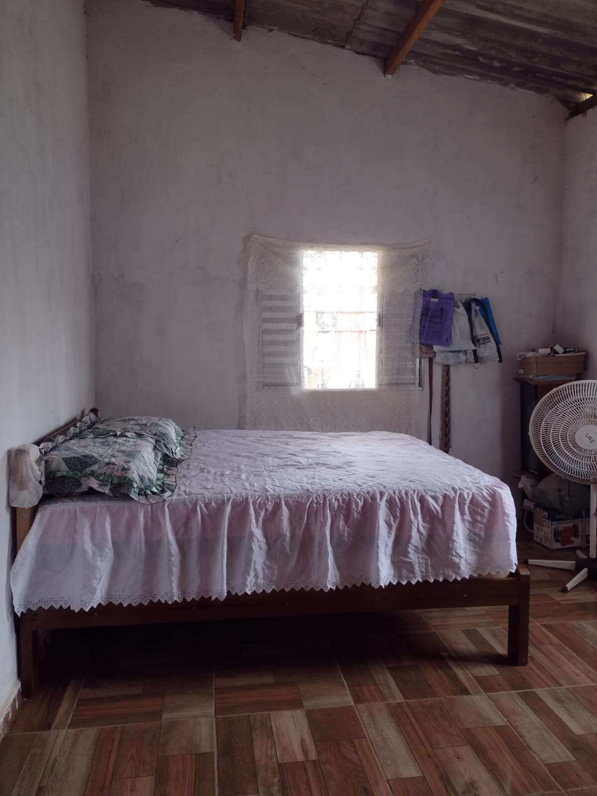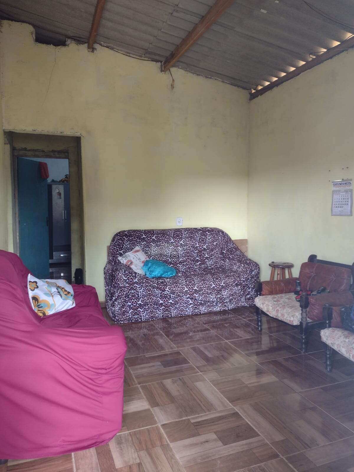 Casa modesta de 2 quartos, sala, cozinha e banheiro.